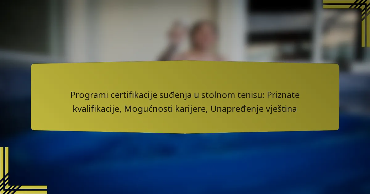 Programi certifikacije suđenja u stolnom tenisu su strukturirani tečajevi osmišljeni kako bi opremili pojedince potrebnim vještinama i znanjem za učinkovito suđenje utakmicama. Ovi programi su bitni za osiguranje da suci budu prepoznati po svojoj kompetenciji i pridržavanju pravila sporta.