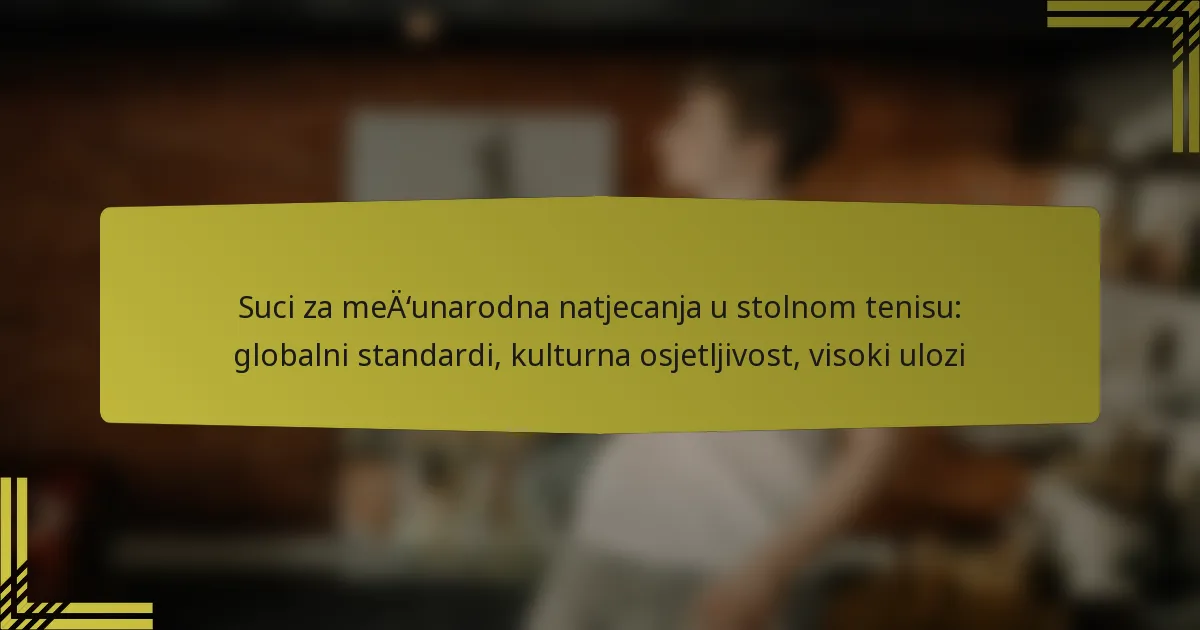 Nacionalni turniri, poput USA Table Tennis Championships, često zahtijevaju certificirane suce kako bi osigurali visoke standarde suđenja. Međunarodna događanja, uključujući Svjetska prvenstva i kvalifikacije za Olimpijske igre, pružaju izloženost različitim stilovima igre i praksama suđenja.